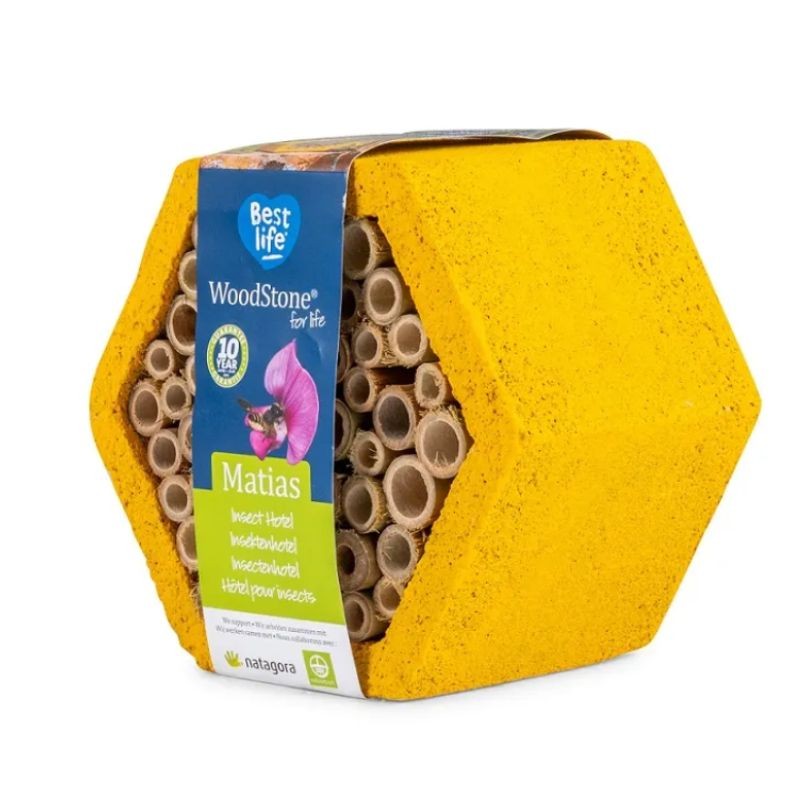 Cet élégant hôtel à insectes combine robustesse et esthétique grâce à son design en béton de bois, offrant un refuge idéal aux abeilles solitaires pour leur reproduction. Face au déclin des populations d'abeilles, il est crucial de leur fournir un soutien en installant un tel refuge. Sa structure hexagonale est fabriquée en béton de bois (WoodStone), une fusion de fibres de bois et de béton assurant sa durabilité. Les tubes de bambou à l'intérieur sont remplaçables, permettant ainsi aux insectes de nicher à nouveau confortablement.
