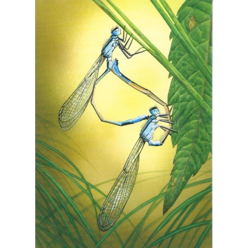 Libellules "Ischnura elegans" : carte dessinée par le célèbre peintre animalier belge « André Buzin ».