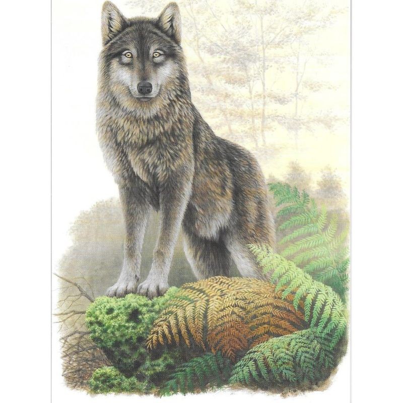 Loup d’Europe : carte dessinée par le célèbre peintre animalier belge « André Buzin ».