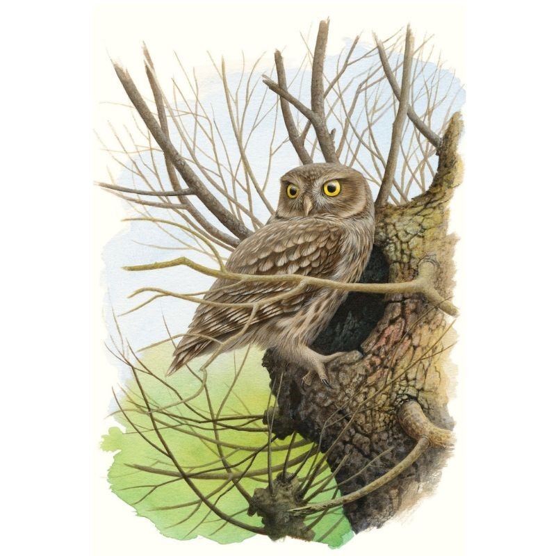 Tirage limité Chouette Chevêche d'Athéna - Tableau d'André Buzin - A4