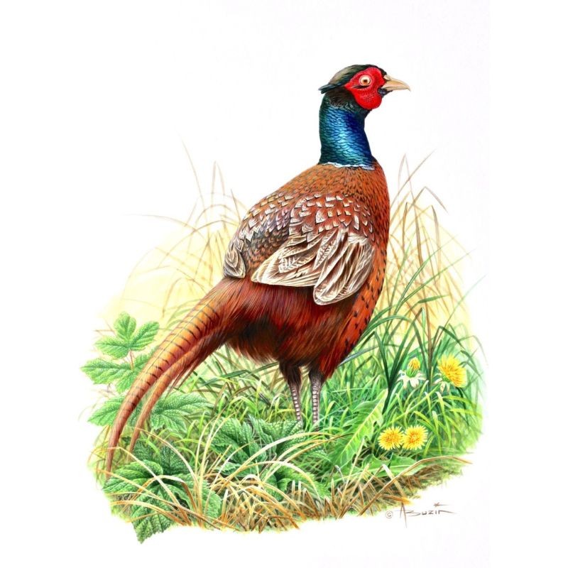Tirage limité Faisan "Le polygame" - Tableau d'André Buzin - A4